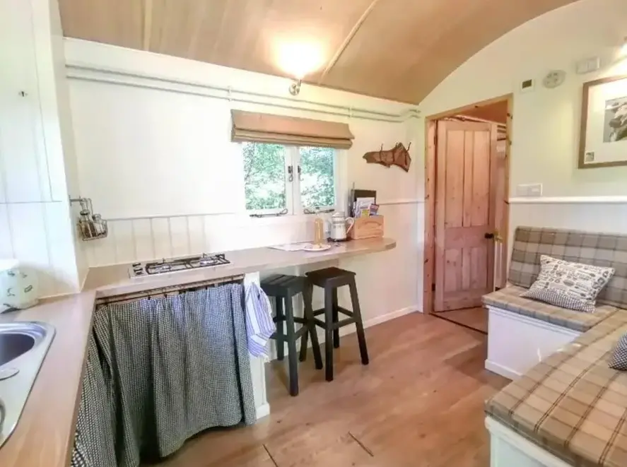 Weitere Informationen zu The CottageDie Shepherd’s Huts auf der Penn Farm bei Higher Ashton bieten einen kostenlosen Parkplatz und sind ideal für Gäste, die eine ruhige Unterkunft mit ländlichem Charme suchen. Die gemütlichen Holzhütten liegen abseits des Trubels, während direkt vor Ort ein separater Raum zum Aufenthalt zur Verfügung steht.